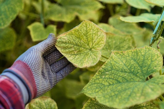 Также стоит обратить внимание на содержание питательных веществ в почве. Огурцы нуждаются в азоте, фосфоре и калии. Если одного или нескольких из этих компонентов не хватает, это обязательно скажется на листве — прежде всего листья станут желтыми из-за нехватки азота. На нехватку магния также стоит обратить внимание, так как этот элемент необходим для формирования хлорофилла, отвечающего за зеленый цвет.