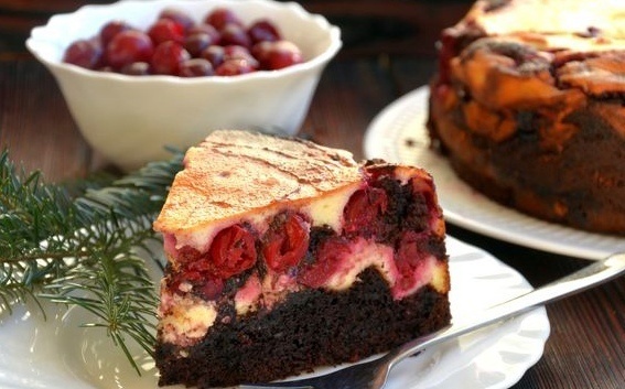 Разогрейте духовку до 180 градусов. Форму для выпечки (например, диаметром 19 см) застелите пергаментом или смажьте маслом. На дно выложите две трети шоколадного теста, разровняйте, затем распределите половину творожной массы и половину вишни. Второй слой – оставшееся тесто и вишни, после чего добавьте оставшуюся творожную массу и разровняйте поверхность.
