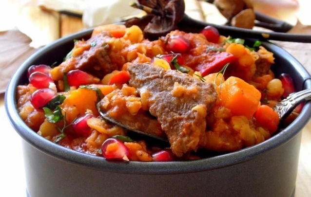 3. Завершение блюда. Теперь пришла очередь чечевицы. Обратите внимание на уровень воды — она должна полностью скрывать все ингредиенты. Через 5 минут добавьте нарезанную тыкву и готовьте до ее мягкости и готовности чечевицы, около 10 минут. По завершению процесса, накройте кастрюлю полотенцем и дайте настояться 15 минут.