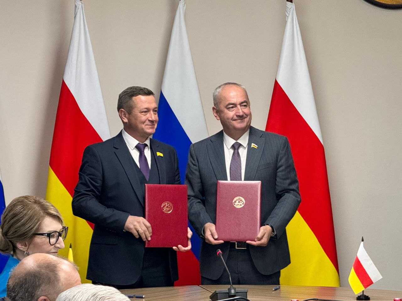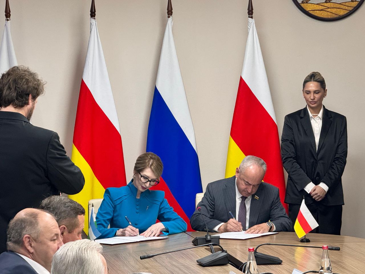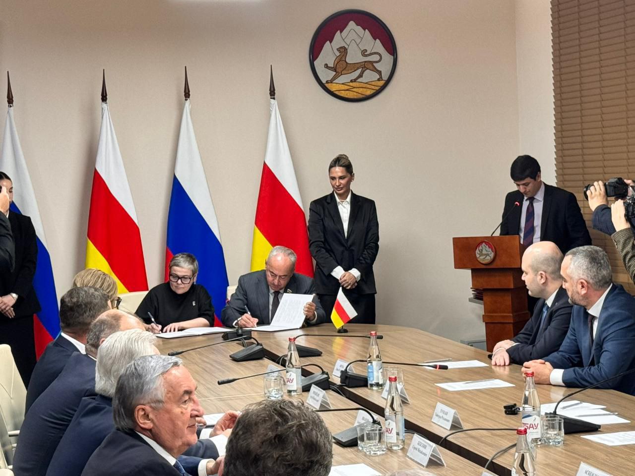 В Доме Правительства Республики Северная Осетия--Алания проходит церемония подписания двусторонних межпарламентских соглашений между Парламентом РСО-Алании и законодательными органами РФ