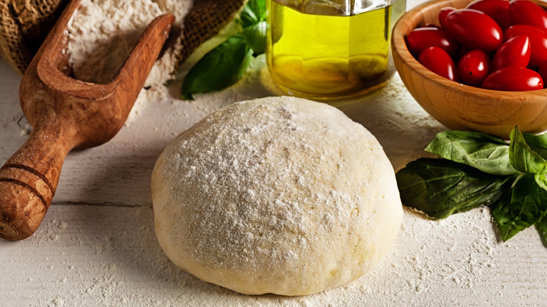 Перемешайте ингредиенты, а затем выложите тесто на присыпанную мукой поверхность и замесите его в течение семи минут. Консистенция должна получиться упругой и гладкой.