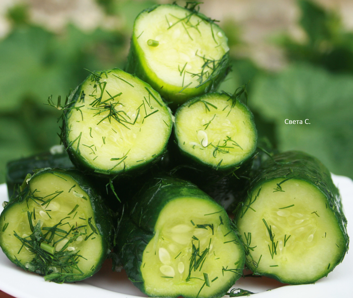 2. Нарезка: чем мельче кусочки, тем быстрее они засолятся, поэтому предпочтительно нарезать огурцы небольшими кусками.