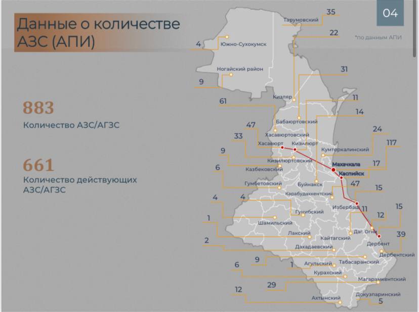 Специалисты Агентства по предпринимательству и инвестициям Дагестана провели мониторинг автомобильных и газозаправочных станций в республике. По данным ведомства, фактическое количество АЗС и АГЗС составляет 883, что на 142 больше, чем указывали муниципалитеты.