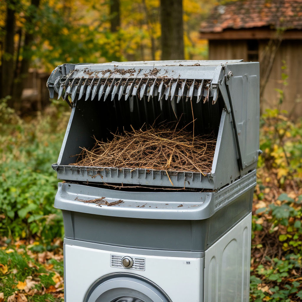 Преимущество использования стиральной машины в том, что она уже содержит корпус и двигатель. Для ее усовершенствования необходимо демонтировать активатор, так как он небезопасен для рубки веток. Вместо него устанавливается режущий узел. Его можно сделать из старого металлического диска или стальной пластины толщиной 4-5 мм, на которую привариваются зубья, изготовленные из прочного материала. Важно учесть безопасность: старую крышку лучше заменить на стальную толщиной 1,5-2 мм и обеспечить ее плотное закрытие, чтобы предотвратить случайные выбросы щепы.