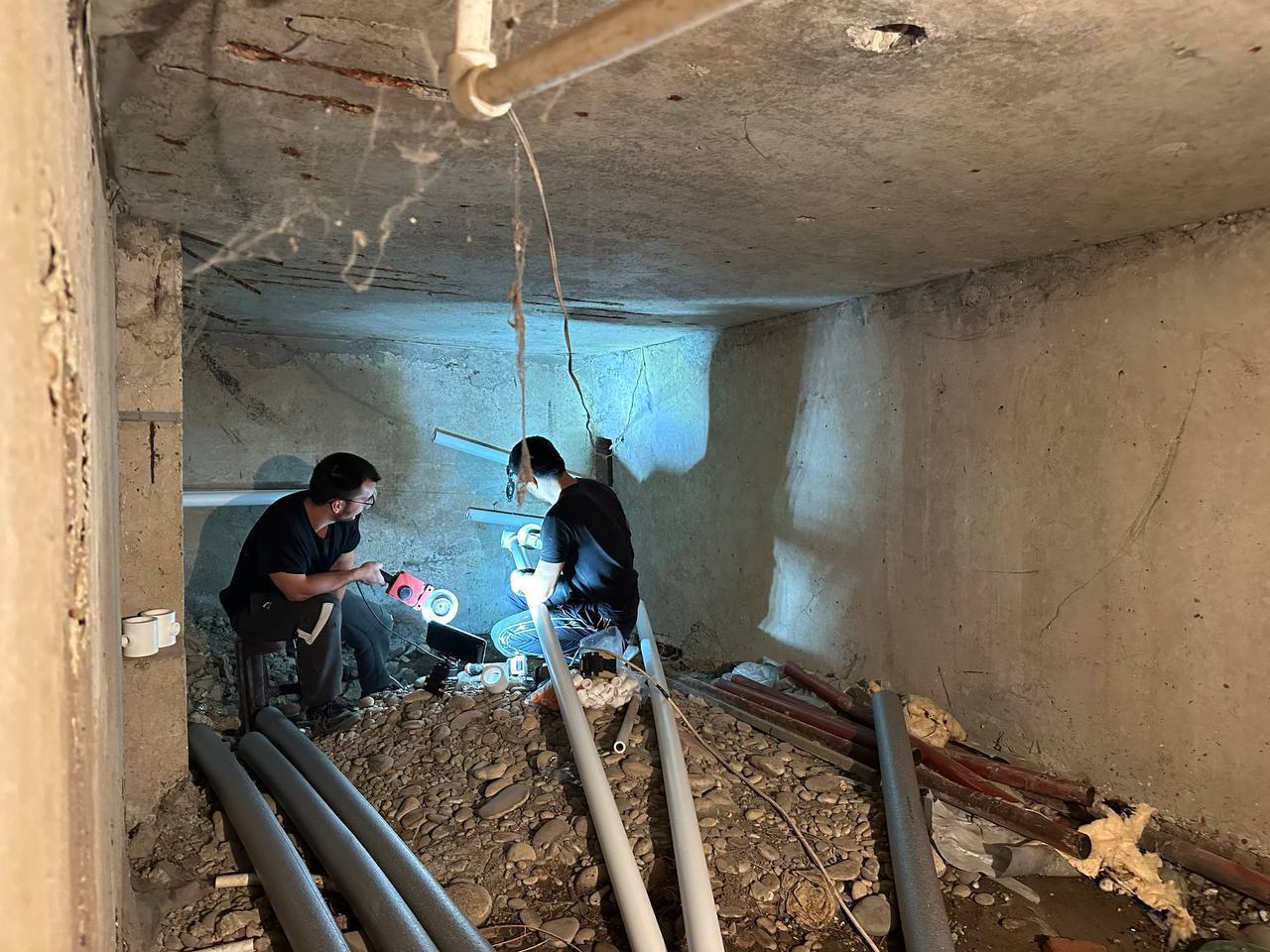В доме №94 идёт ремонт труб теплоснабжения.