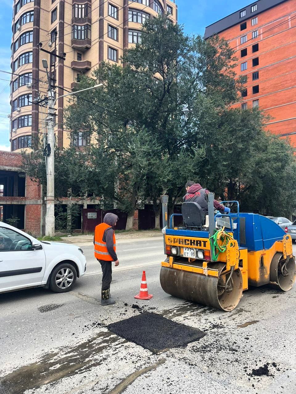 Отдел дорожного хозяйства МБУ "Благоустройство г. Махачкалы" устраняет локальные разрушения асфальтобетонного покрытия на проспекте Амет-Хана Султана