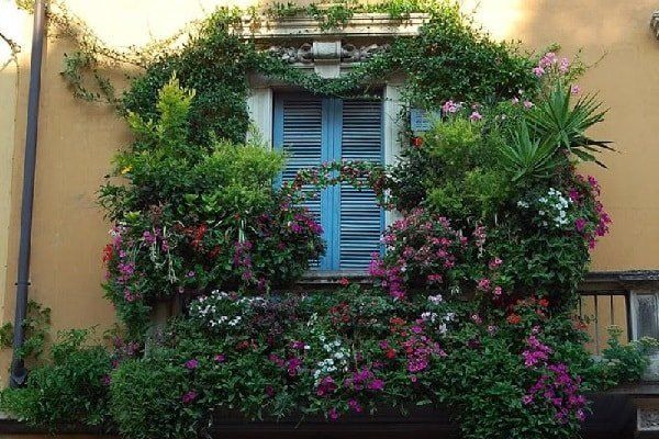 Украшение балкона цветами и зеленью добавляет жизни и красок в городской пейзаж.