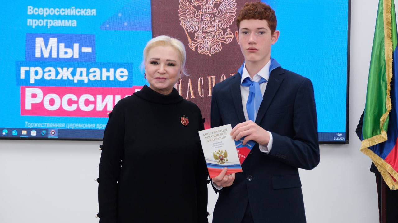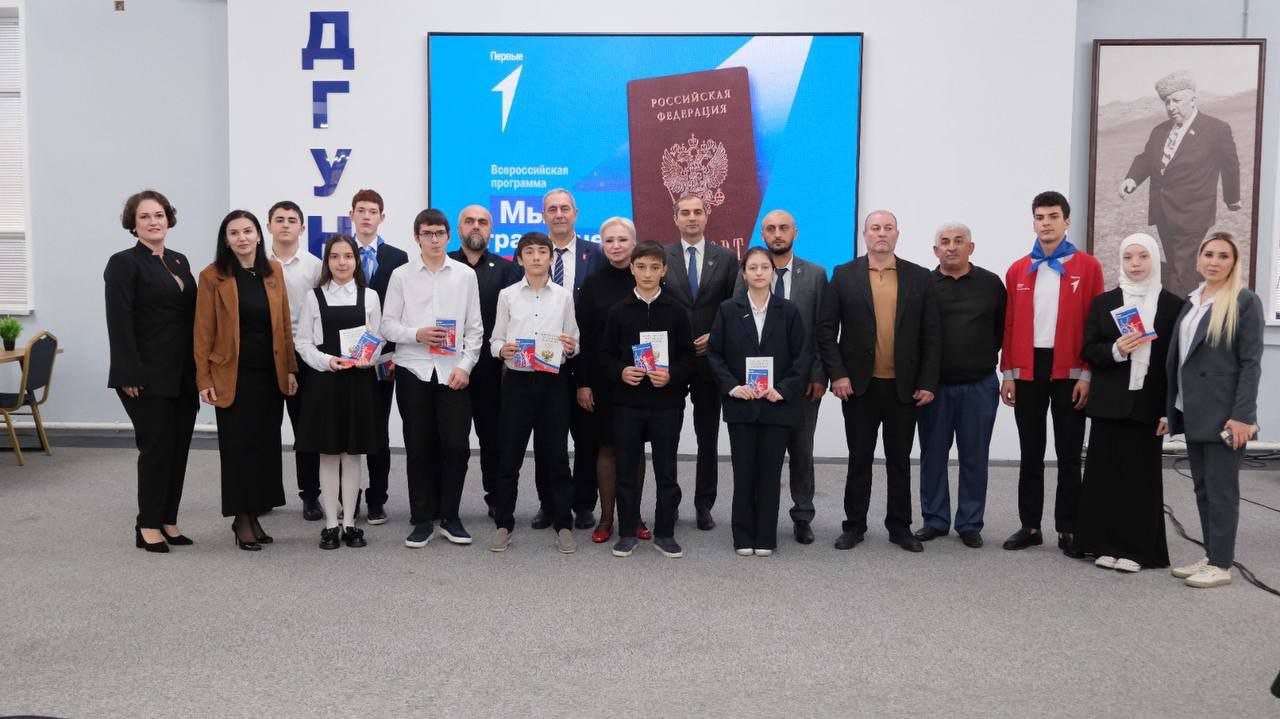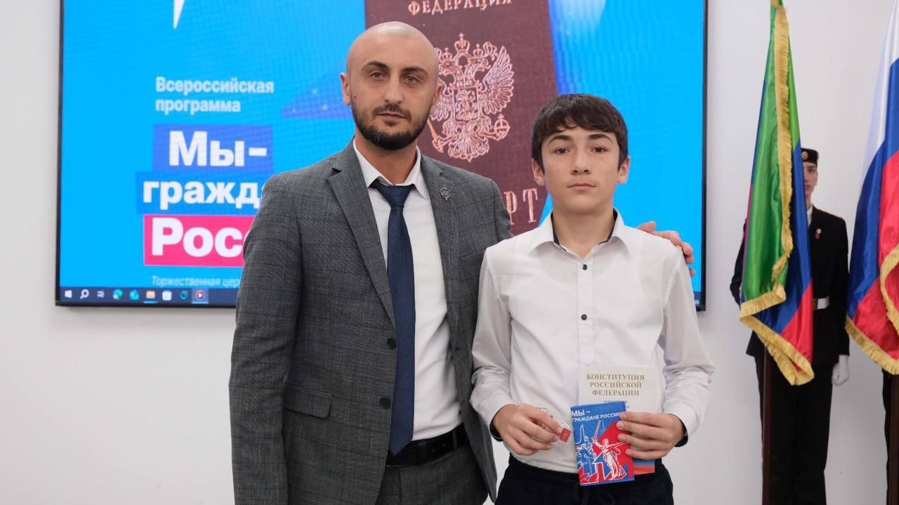 Председатель комитета НС РД Елена Павлюченко и участник региональной программы «Доблесть гор» Ахмед Магомедов вручили первые паспорта юным жителям республики.