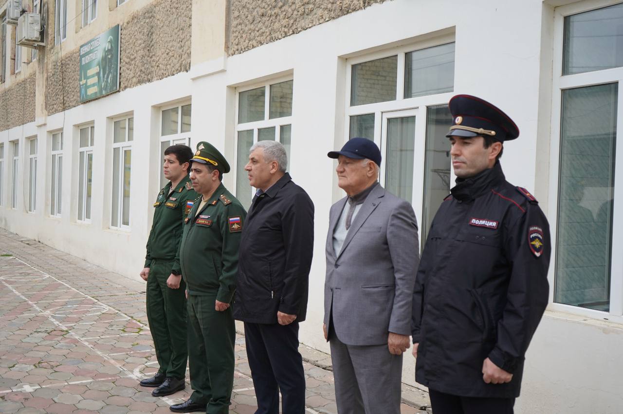 В мероприятии приняли участие военный комиссар Фарид Мусаев, заместитель главы администрации Дербента Видади Зейналов, председатель Совета ветеранов Гаджимурад Гаджимурадов и представитель ГОВД Руслан Сефербеков.