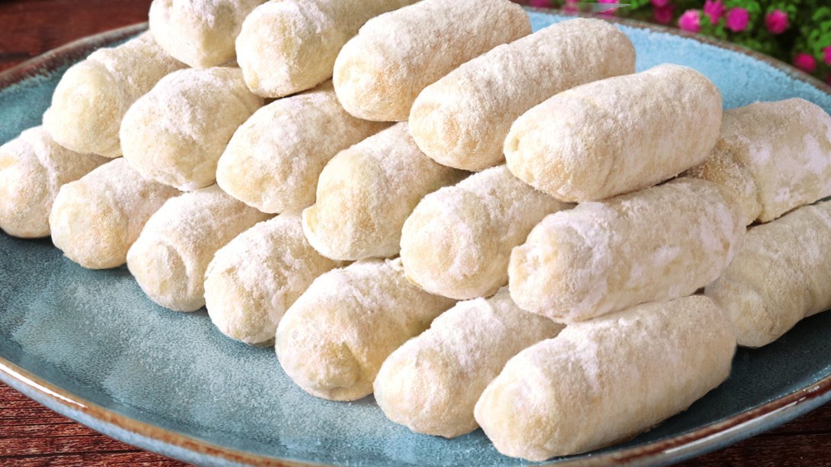 Когда тесто будет готово, разделите его на четыре части и раскатайте в тонкие пласты. Каждую часть нарежьте на 8 сегментов и не забудьте выложить ореховую начинку. Заверните их в трубочки и выпекайте при температуре 180°C всего 15 минут. Завершите процесс, посыпав готовые трубочки сахарной пудрой, чтобы добавить сладости и визуальной привлекательности.