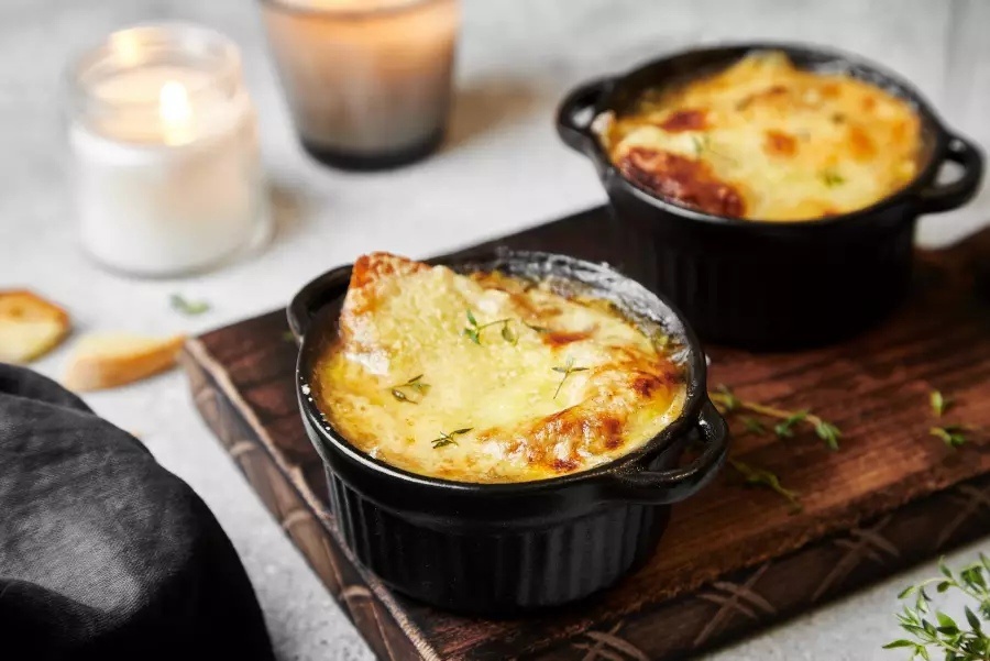 Этот суп идеально подходит для холодного вечера, радуя сладковатым вкусом карамелизированного лука и изысканными нотками белого вина, создает атмосферу уюта и комфорта. Каждый глоток — это погружение в французскую традицию, которой стоит поделиться с близкими.