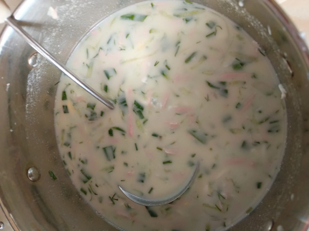 Однако не стоит забывать про роль сметаны. Она должна быть средней жирности, чтобы придать окрошке кремовую текстуру и насыщенный вкус. Желтки лучше всего растереть с горчицей или соленой сметаной — это сделает блюдо более однородным и без комков.