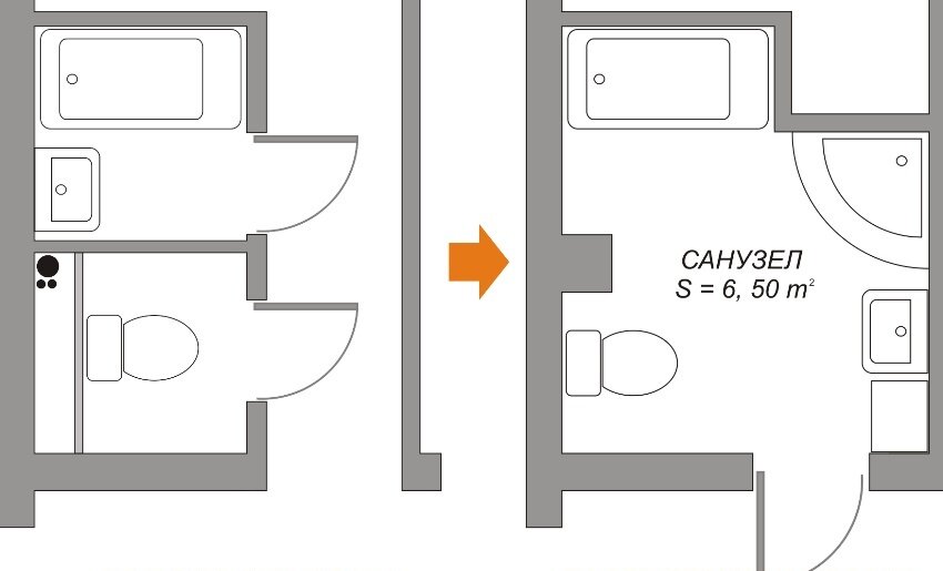 - Нельзя расширять площадь ванной за счет жилых помещений, таких как кухня или гостиная.