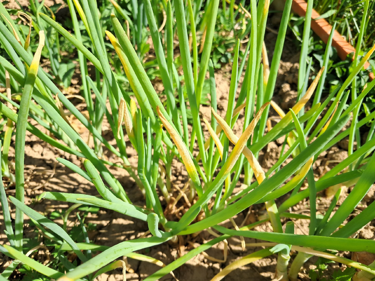 - Недостаток влаги: В условиях жаркого лета лук может страдать от засухи. Регулярный полив особенно важен в период активного роста, чтобы предотвратить пожелтение.