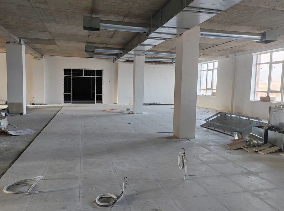 На конец октября текущего года на объекте выполнен огромный фронт работы, фасадная часть здания школы завершена, силы подрядчика направлены на настил тепло и водоизолирующего слоя кровли.