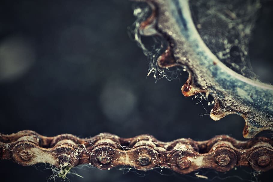После того как цепь была очищена, необходимо тщательно ее высушить, особенно если использовалась вода. Смазывать нужно только внутренние компоненты, находящиеся в трении.