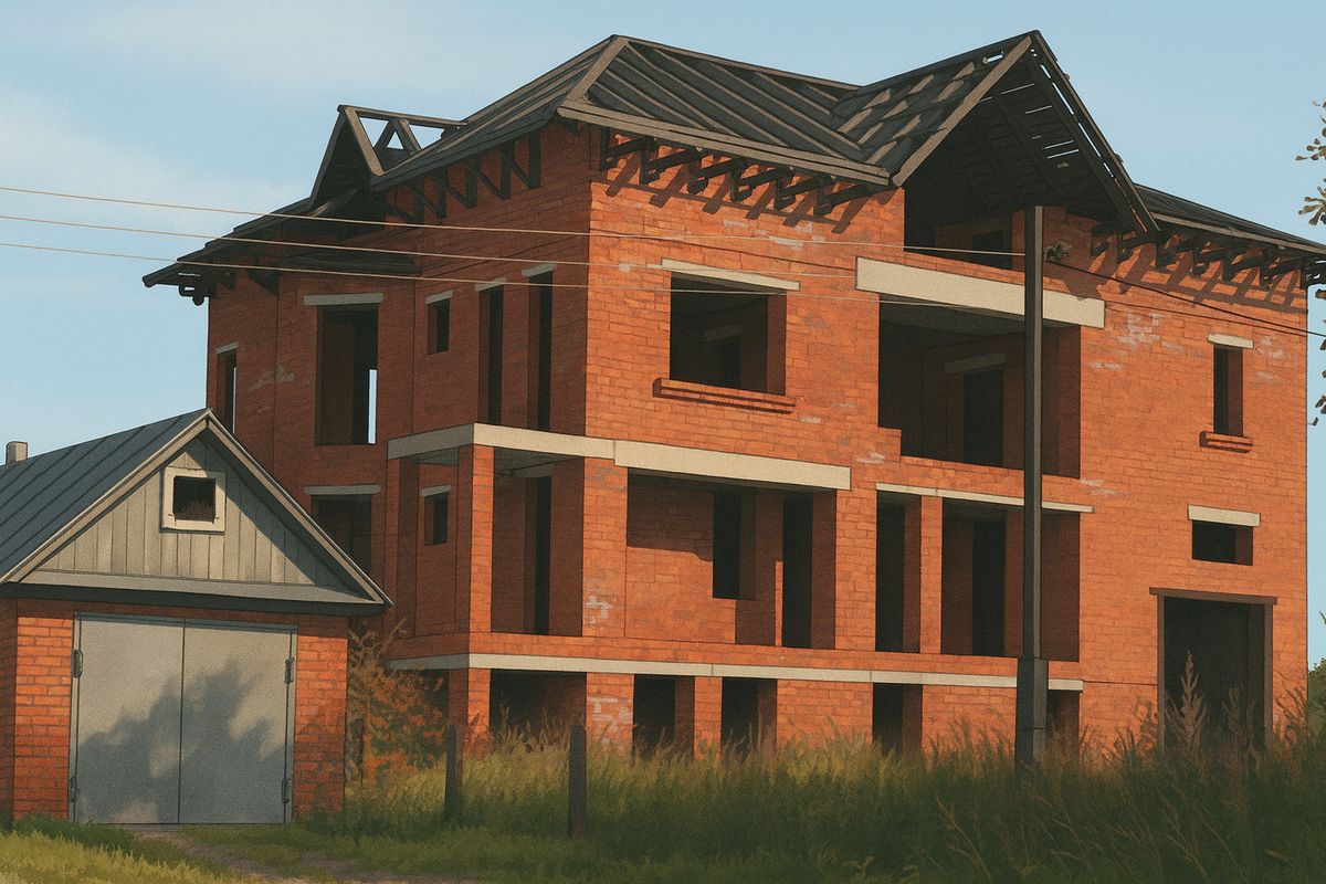 В 2011 году молодая пара стала владельцами земельного участка, на котором вскоре началось строительство. За несколько лет им удалось построить внушительный коттедж площадью 560 квадратных метров с четырьмя этажами, но оформить дом в собственность не успел муж, который трагически скончался.