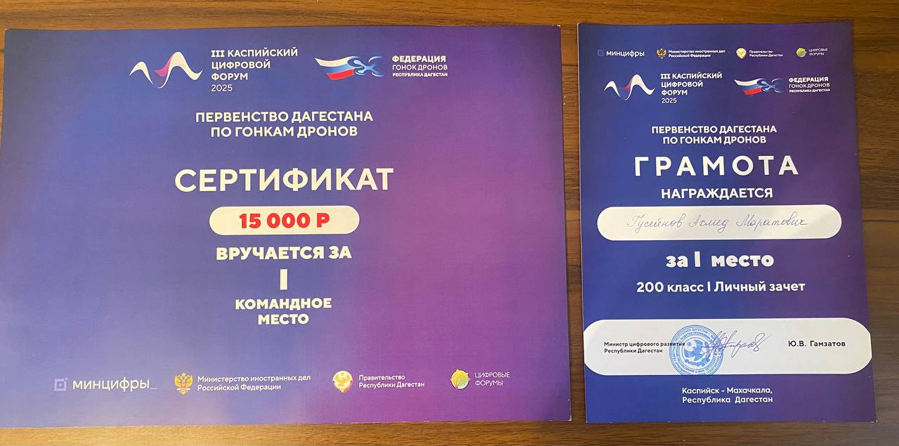 Наставник МБОУ «Лицей 13 имени Расула Гамзатова» ДТ «Кванториума» — чемпион по гонкам дронов на Каспийском цифровом форуме!