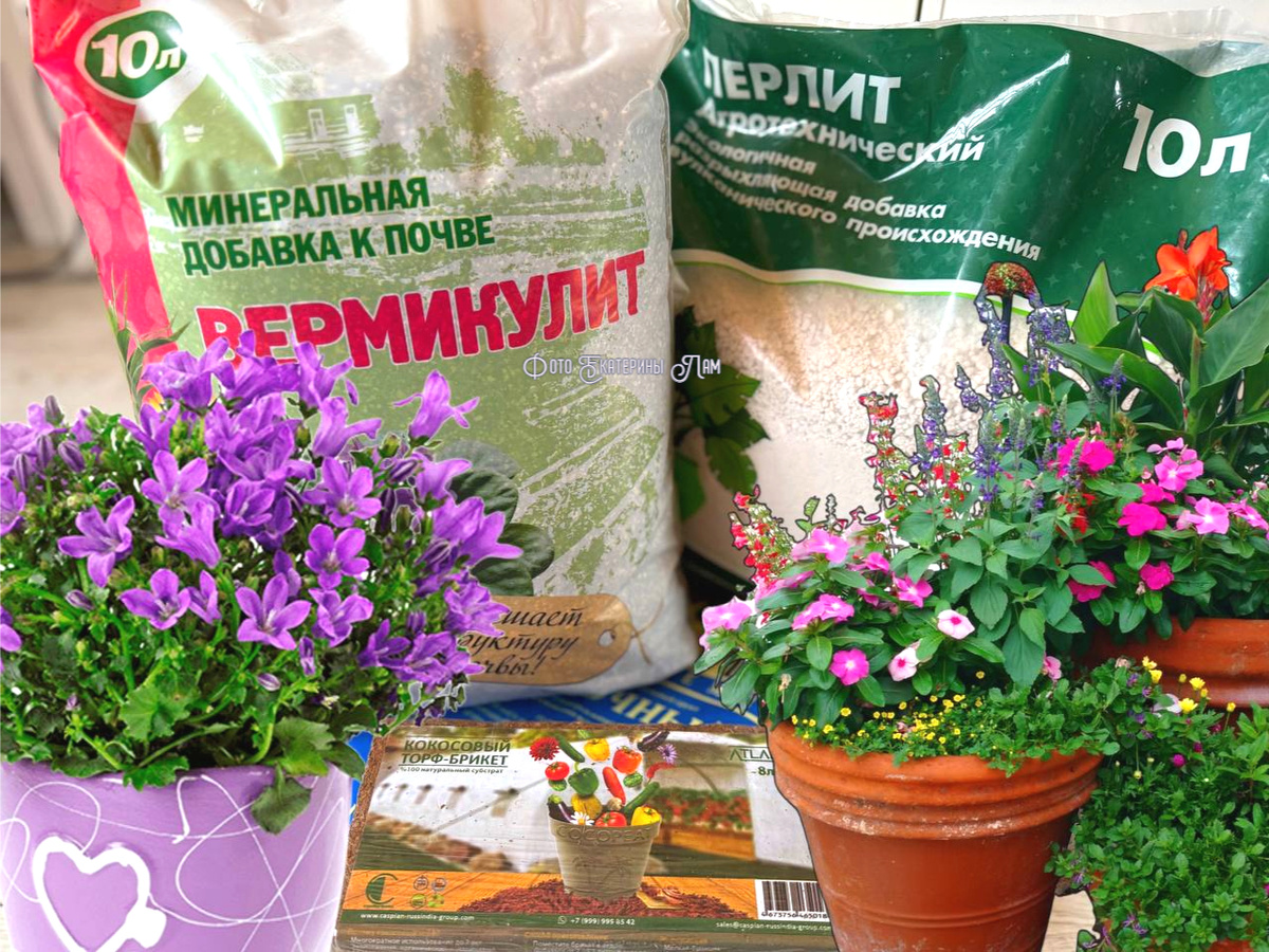 - 10 л торфа, 6 л перегноя, 4 л песка, 2 л вермикулита, 2 л агроперлита, 1 стакан доломитовой муки и удобрения длительного действия.