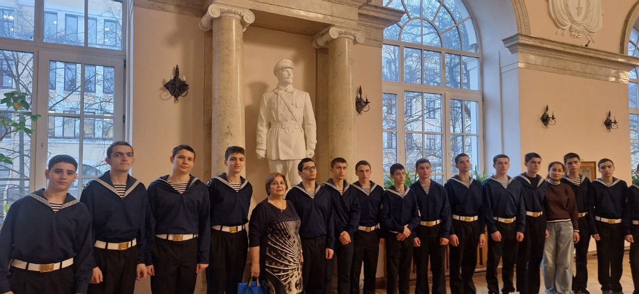 Далее Руслан Эльдаров провел для ребят экскурсию по музею Морского Корпуса. Погружение в историю и традиции российского флота, безусловно, оставило неизгладимое впечатление на каждого воспитанника.