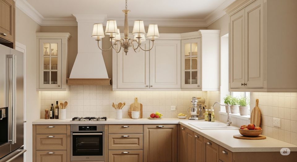 Кухня — это не только место для приготовления пищи, но и пространство для общения. Важно обеспечить равномерное освещение, чтобы избежать резких теней. Центр освещения можно оформить с помощью потолочной люстры или нескольких подвесных ламп. Подсветка под шкафами станет отличным дополнением, облегчая процесс готовки в вечернее время. Желательно выбирать лампы с цветовой температурой от 3500 до 4000 К — это позволит естественно передать цвета продуктов.