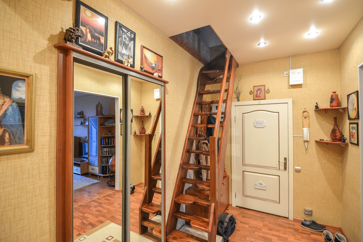 Находясь на верхнем этаже высотного дома, женщина арендовала часть технического этажа, который, по сути, служил хранилищем для коммуникаций и брался в аренду под офис. После установки лестницы и превращения квартиры во вторую зону, ее площадь увеличилась до 188,9 квадратных метров. В новом пространстве появились кухня, ванная комната и все необходимое для комфортной жизни.