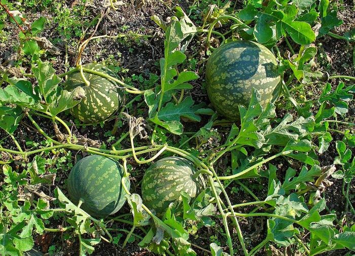 Для красивых и крупных арбузов необходимо подготовить грядки заранее. За 1-2 недели до высадки рекомендуется внести органические удобрения: 5 кг перепревшего компоста или навоза, 250 г древесной золы и 1 ч. ложку суперфосфата. Если почва тяжелая, не помешает добавить 20 кг речного песка.
