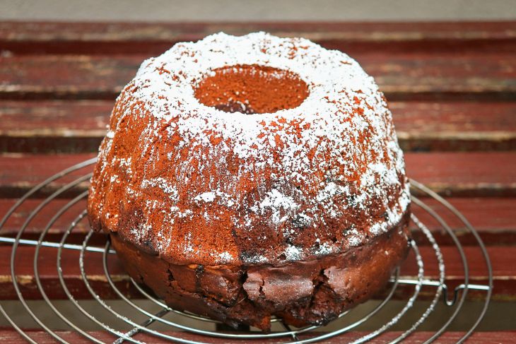 Полученное тесто нужно отправить в форму для запекания, застеленную пергаментной бумагой, после чего отправить в разогретую до 180 градусов духовку, выпекать на протяжении 35 минут.