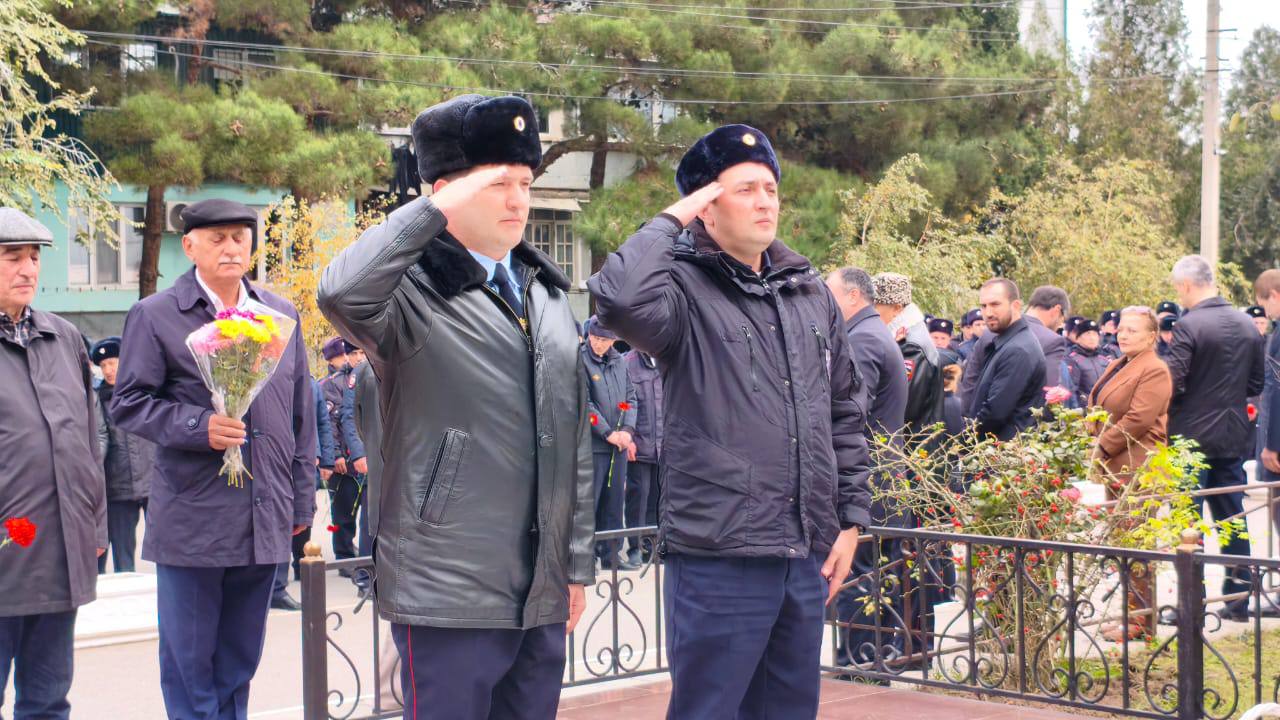 Сегодня, 8 ноября, в Каспийске состоялась торжественная церемония возложения цветов к мемориалу, расположенному у здания городского отдела МВД.