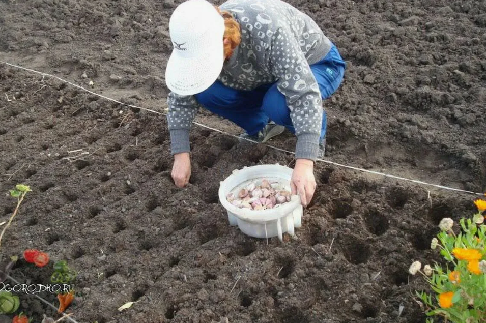 Рекомендуется сажать зубчики на глубину 10 см с расстоянием 15 см между ними. После посадки грядку можно мульчировать перегноем или торфом, что защитит от морозов и обеспечит дополнительное питание весной. Как только снег сойдет, мульчу убирают, и чеснок быстро начинает развиваться.
