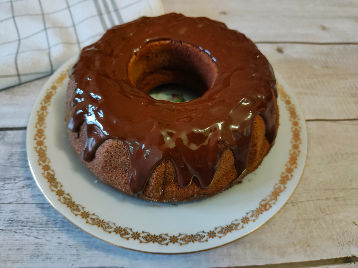 Подготовим глазурь: растопите шоколад с добавлением чайной ложки растительного масла, чтобы глазурь была пластичной. Полученную массу полейте на остывший кекс, сделав нарядные потеки по бокам. Такой сладкий финал станет настоящей вишенкой на торте!