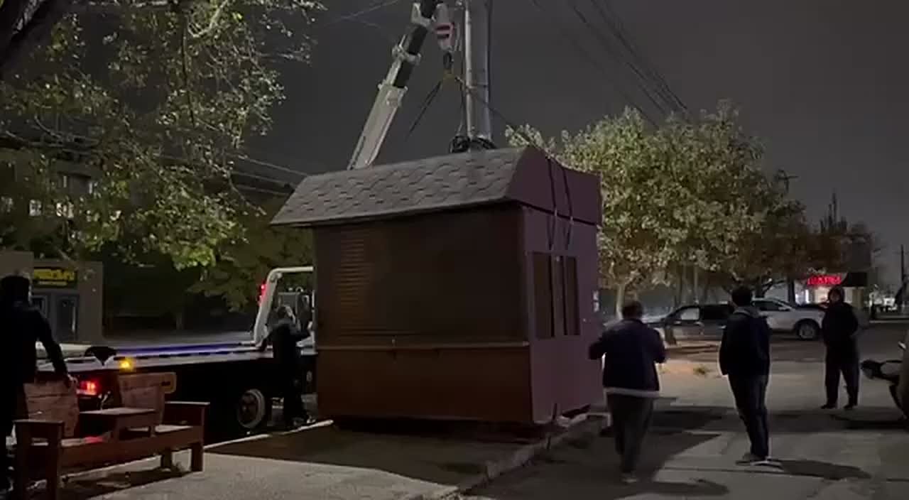 Очередной незаконно установленный торговый павильон вывезли ночью в Махачкале, с проспекта И. Шамиля.