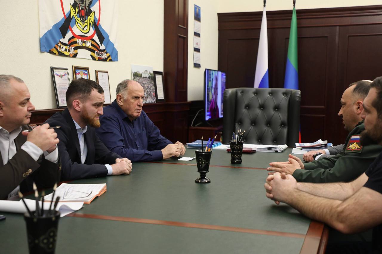 Председатель Правительства Дагестана Абдулмуслим Абдулмуслимов провёл встречу с военнослужащими — заместителем военного прокурора полковником Ренадом Османовым, заместителем командира 42 гвардейской Евпаторийской Краснознаменной мотострелковой дивизии полковником Анзором Хабиловым и капитаном Зурабом Ахмедовым.