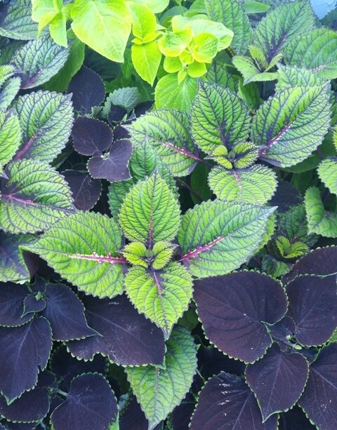 Листья колеуса поражают своим разнообразием — от красных и желтых до насыщенных бордовых и даже почти черных оттенков. У некоторых сортов они могут быть разрезными, с волнистыми или зубчатыми краями. Сложно переоценить, насколько яркие и контрастные листья колеуса способны затмить другие растения в любом цветнике.