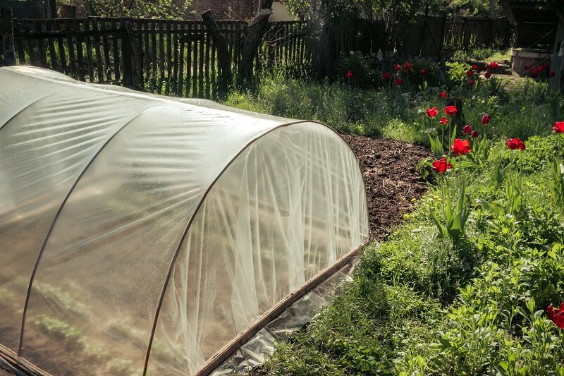 Для создания каркаса парника подойдут металлические профили, которые можно изогнуть с помощью специального оборудования, или пластиковые трубы, устойчивые к коррозии. Важно, чтобы укрывной материал был качественным – не стоит использовать тонкую пленку, так как она быстро порвется. Лучшие варианты укрытия — это плотный полиэтилен или натянутый нетканый материал. У таких покрытий хорошая теплоизоляция, и они пропускают свет.