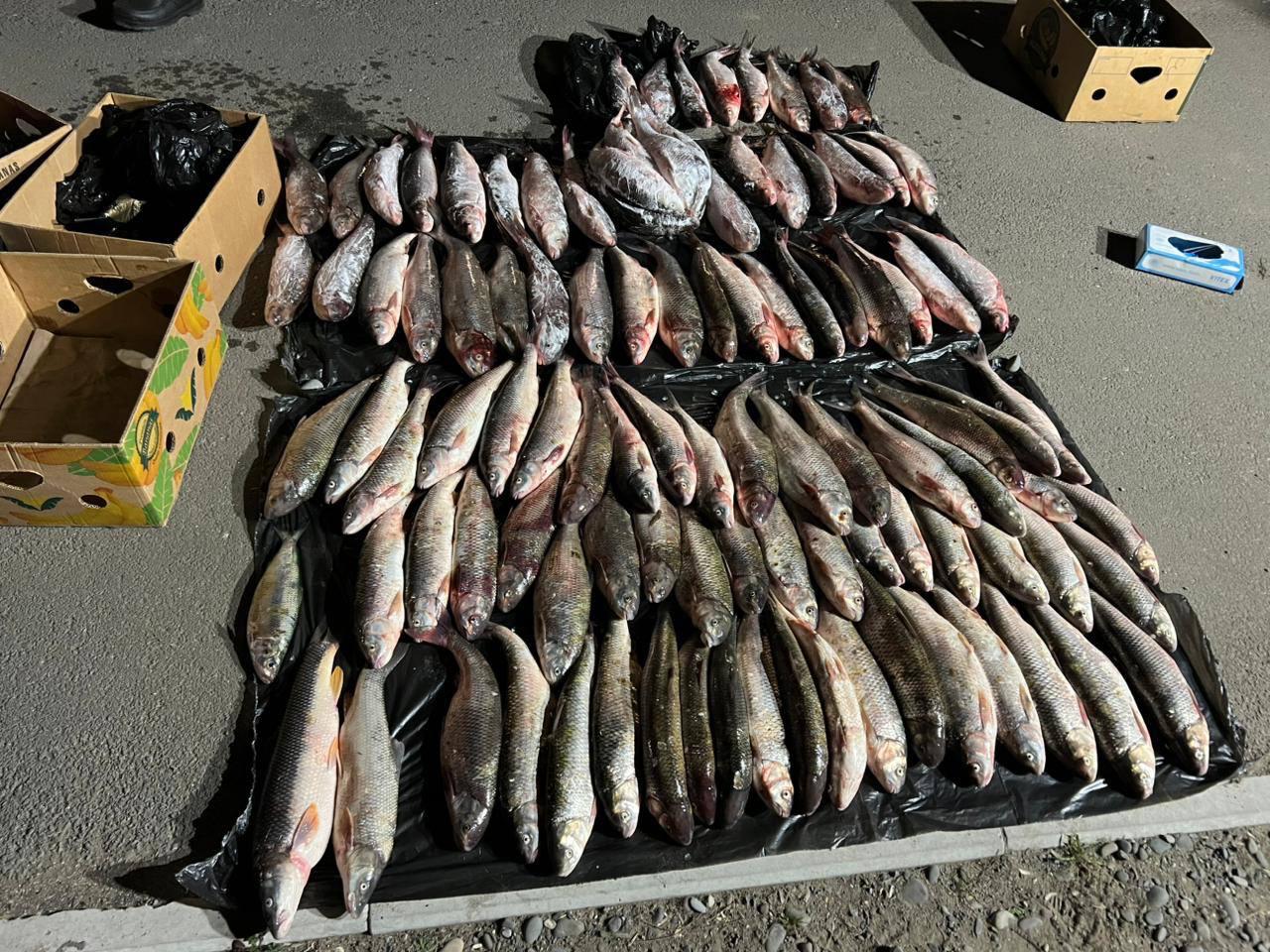 На КПП «Джемикентский» вечером 11 ноября сотрудники Северо-Кавказского ТУ и полиции остановили автомобиль «Volkswagen Caddy» и обнаружили в багажнике крупную партию незаконно добытой рыбы. У 59-летнего водителя изъяли 106 экземпляров частиковых видов — 104 кутума и 2 усача, весом около 140 кг.