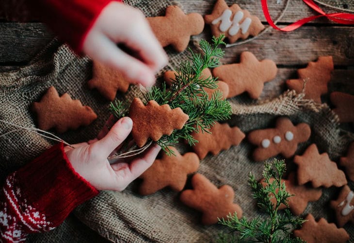 Имбирное печеньеДомашний питомецФруктовый букетЕлочная игрушкаЧудесное и ароматное имбирное печенье в форме елочки, варежки, пряничного человечка или любого другого новогоднего атрибута станет отличным сувениром на праздник.