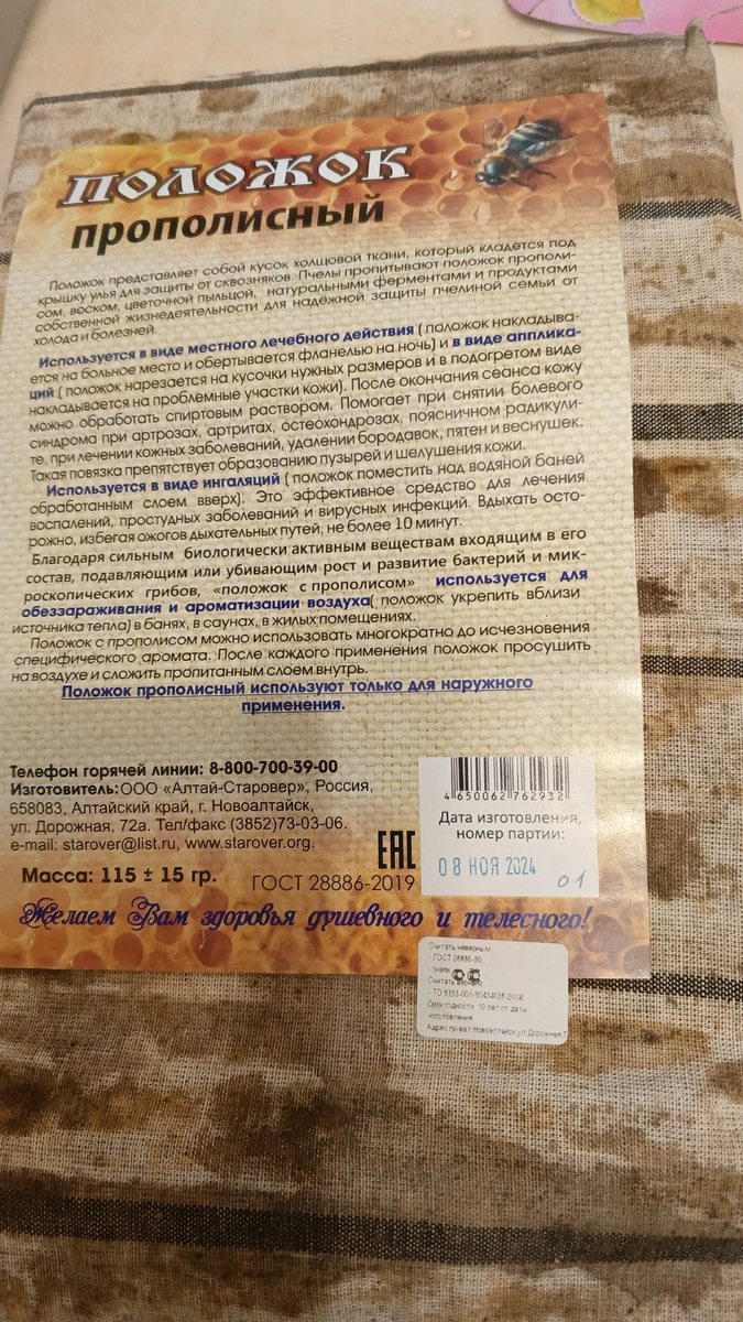 Этот нетрадиционный метод лечения основан на старинной практике, популярной в деревнях, где люди давно использовали натуральные продукты пчеловодства. Прополисный положок помогает облегчить боли в суставах и спине, а также подходит для ног.