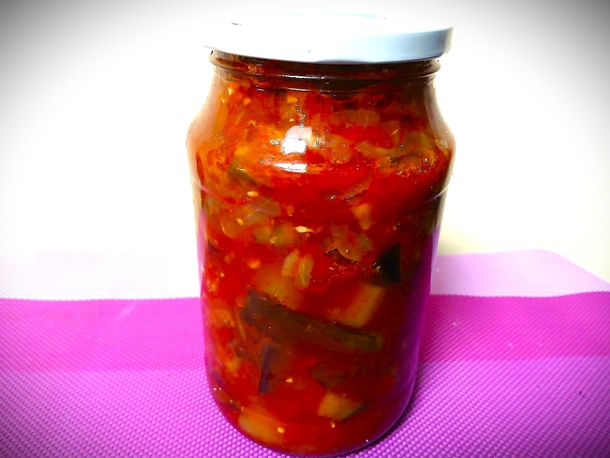 Как только перец станет мягким, добавляются обжаренные баклажаны, а потом – чеснок и острый перец. В конце готовки вливается уксус, после чего все ингредиенты провариваются еще пару минут. Готовое лечо следует разлить по стерилизованным банкам, закатать и перевернуть для остывания.