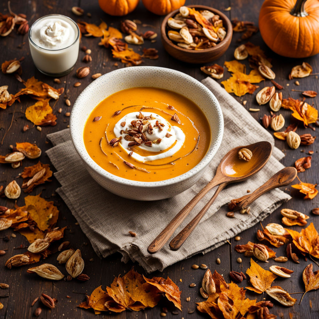 - Крем-суп из тыквы: Овощной суп, насыщенный сливками и красивым оранжевым цветом, обогатится специфическим вкусом мускатного ореха.