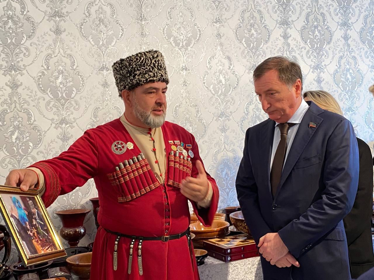 Перед началом заседанияПредседатель Народного собрания РД Заур Аскендеров, заместитель министра по туризму и НХП РД Анна Безрукова, глава Унцукульского района Иса Нурмагомедов, а также представители профильных ведомстви мастера-ремесленники посетили мастерскую «Унцукульские изделия».