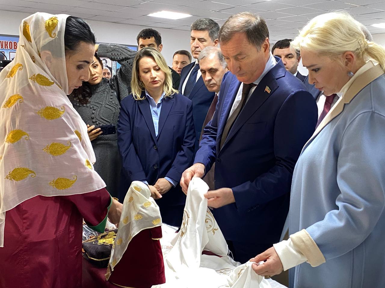 В рамках выездного заседания в фойе администрации Унцукульского района была организована выставка народных художественных промыслов для участников и гостей мероприятия.