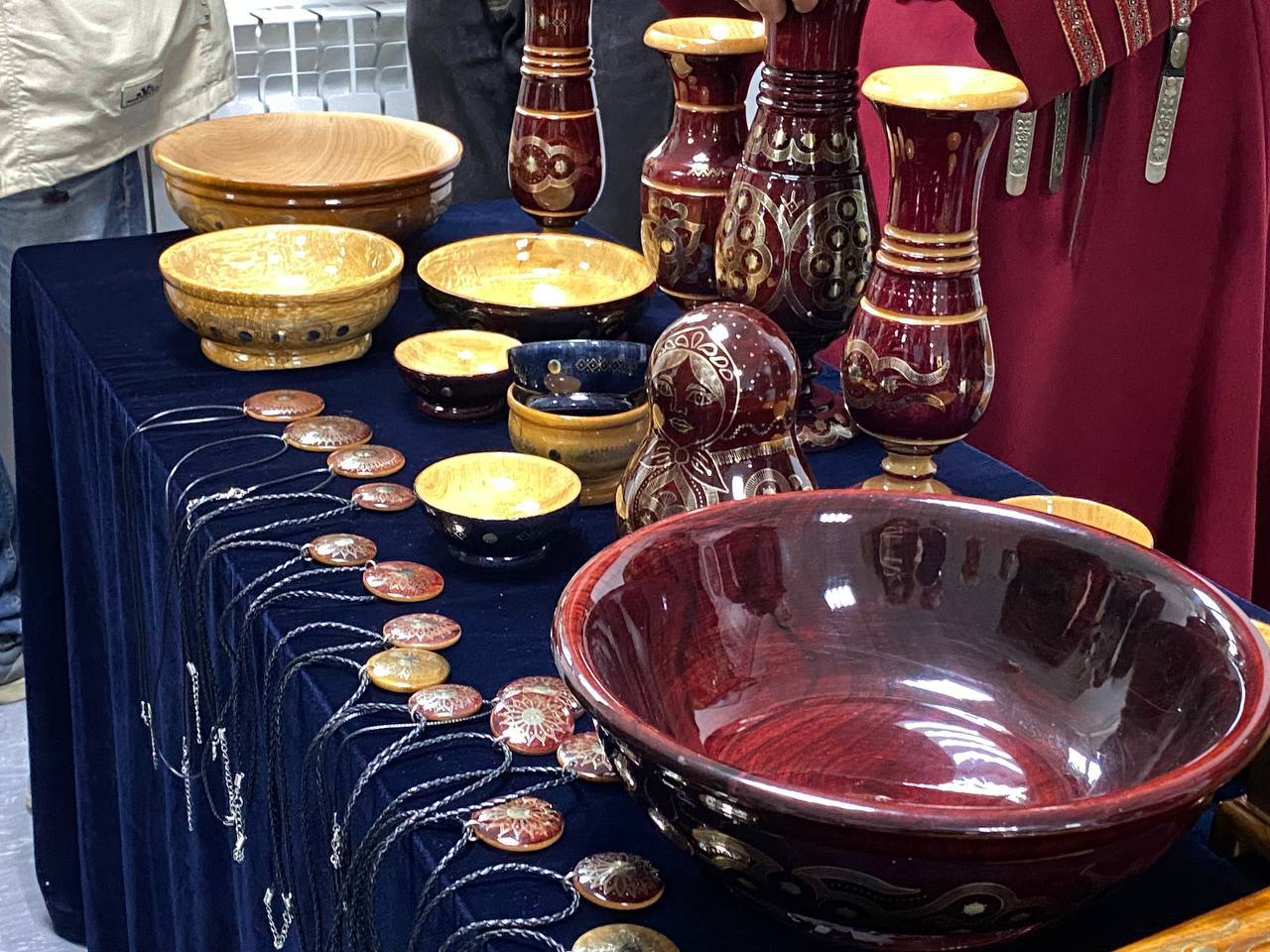 На экспозиции представлены работы дагестанских мастеров - традиционные изделия из дерева, глины, текстиля и металла, отражающие богатое культурное наследие района и высокое мастерство ремесленников.