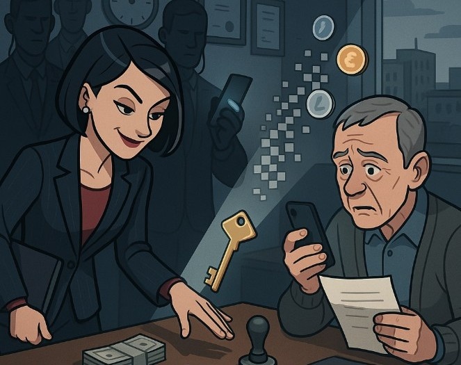 Нарисованный мошенниками план быстро начал реализовываться. Для начала пенсионеру предложили перевести 50 000 рублей как задаток. Остальные 3 450 000 рублей он подписал у нотариуса, после чего «согласился» конвертировать свои рубли в криптовалюту, отправив всего лишь описание сделки: «Договор не кабальный». Наивный дедушка даже клялся, что действует «в свободном и сознательном порядке». Однако вскоре стало очевидно, что это была игра, и он оказался в ловушке.