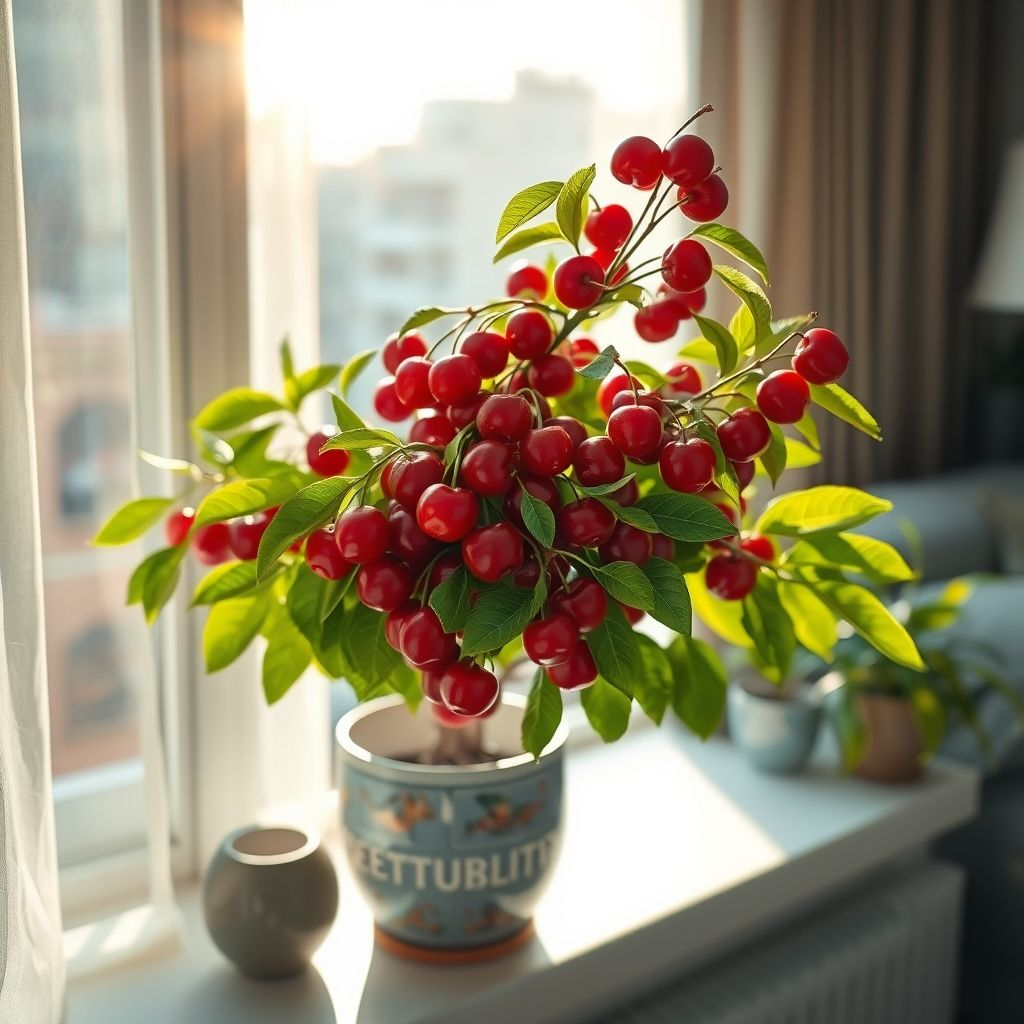 Черешня требует много света, поэтому лучше всего разместить её на южном или юго-восточном окне. Но даже в таких условиях зимой может не хватать света, и тогда стоит прибегнуть к фитолампам для создания полноценного светового дня. Температура в помещении должна быть в пределах 20-25°C, но черешне нужен и зимний период покоя. Очень важно обеспечить ей холодные условия после листопада: температура от 0°C до +7°C поможет подготовить растение к новому сезону, иначе оно может не зацвести.
