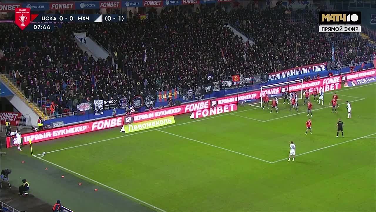 В матче четвертьфинала Кубка России махачкалинское «Динамо» после первого тайма побеждает московский ЦСКА со счётом 1:0 в гостях.