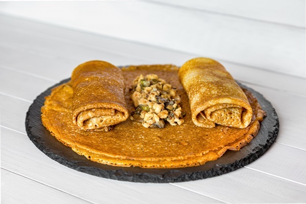 Эти блины являются сытным основным блюдом или изысканной закуской.