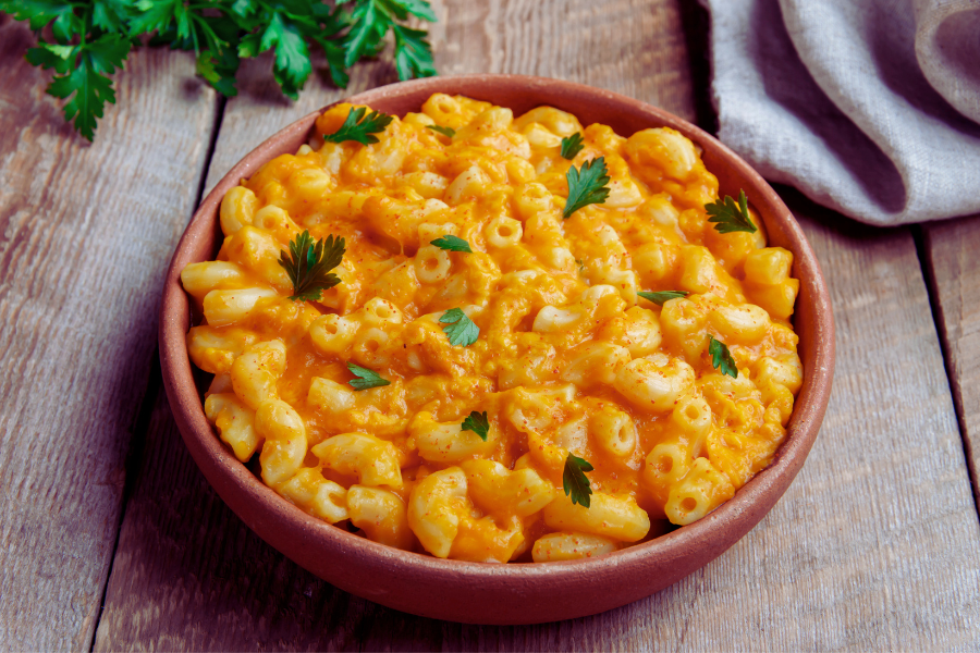 3. Тыквенный соус: Очистите тыкву и нарежьте её на кусочки. Сделайте пюре при помощи блендера, а затем в небольшой кастрюле доведите до кипения, готовя 3-4 минуты для выпаривания влаги. Добавьте овощной бульон и доведите до кипения, а затем введите сливки. Готовьте на медленном огне, пока соус не загустеет. Перемешайте с макаронами, добавьте сыр и украсьте свежими травами.