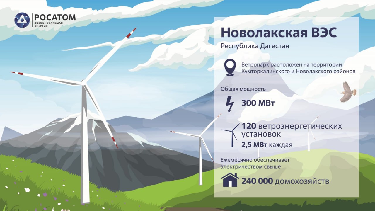 «Росатом вложил в проект 50 млрд рублей — это частные инвестиции, не из бюджета России или Дагестана. В декабре запускаем первый этап ветропарка, который поможет компенсировать дефицит электроэнергии», — сообщил глава Дагестана Сергей Меликов.