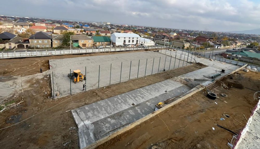 Параллельно продолжаются подготовительные работы перед заливкой оснований футбольного поля и спортплощадок перед зданием образовательного учреждения.